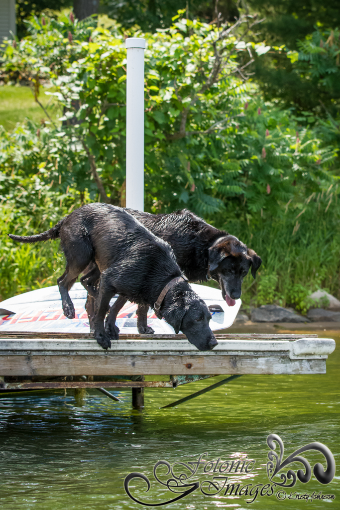 After what seems like hours we finally get to the lake. I am so ready to be out of the car and into the water. The cool water feels so good on my old bones. I can’t wait to just chill on shore. I jump out of the car and start heading towards the lake when BAM! I’m hit from behind, it’s Storm. She is so excited to be out of the car she is running circles around me and trying to get me to play with her. I just want to cool off and sit in the lake. Mommy and Daddy are busy unloading the car so they don’t even see how she is behaving and I just know if I reprimand her, I’m gonna be the one who gets yelled at not her. Life is so unfair sometimes. Maybe just one little growl and a few bared teeth will settle her down…I’d better not, they are sure to hear, besides they will be down soon enough to throw the ball for a while. That will surely wear her out.